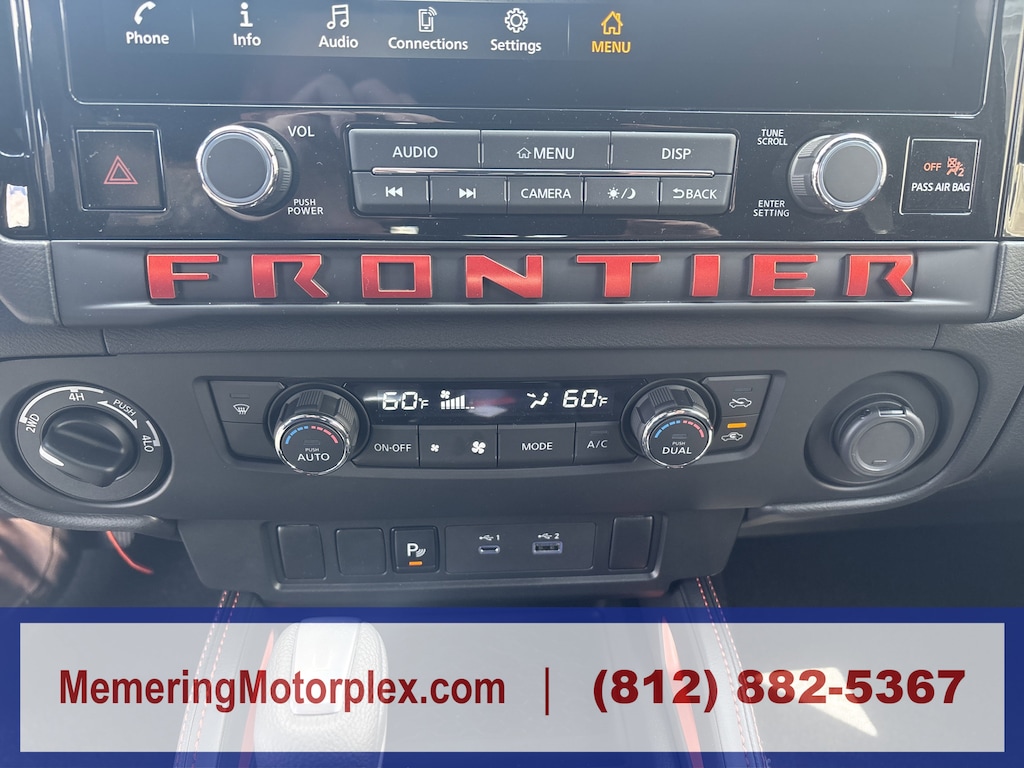 CHARCOAL W/LAVA RED ST, PRO EMBROIDERED PREMIUM CLOTH SEAT TRIM, BOULDER GRAY PEARL, [N10] REMOTE ENGINE STARTER ACCESSORY -inc: Remote Engine Starter, [M92] ESSENTIALS KIT -inc: adventure medic kit, off-road adventure kit, seatback organizer and owner's manual portfolio, [L11] PRO-4X CARPETED FLOOR MATS, [H94] USB CHARGING CABLE KIT, [F92] ELECTRONIC TAILGATE LOCK, [E10] PREMIUM PAINT, [B93] OFF-ROAD STYLE STEP RAILS, [B08] MUD FLAP ACCESSORY -inc: mud flaps. This Nissan Frontier has a strong Regular Unleaded V-6 3.8 L/231 engine powering this Automatic transmission.