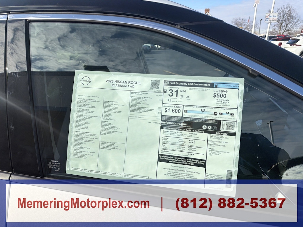 CHARCOAL, QUILTED SEMI-ANILINE LEATHER-APPOINTED SEAT TRIM -inc: Perforated, CHAMPAGNE SILVER METALLIC/SUPER BLACK, [P04] PLATINUM PREMIUM PACKAGE -inc: Heated Rear Seats, Motion-Activated Power Liftgate, Tri-Zone Automatic Temperature Control, Head-Up Display, [L93] FLOOR MATS W/2-PIECE CARGO AREA PROTECTOR -inc: seatback protector, First Aid Kit, [E10] TWO-TONE PAINT, [B96] ROOF RAIL CROSS BARS, [B95] CHROME REAR BUMPER PROTECTOR, [B94] BLACK SPLASH GUARDS (SET OF 4), Wireless Phone Connectivity, Wheels: 19 Unique Dark Painted Aluminum Alloy -inc: Machine finished. This Nissan Rogue has a powerful Intercooled Turbo Regular Unleaded I-3 1.5 L/91 engine powering this Variable transmission.