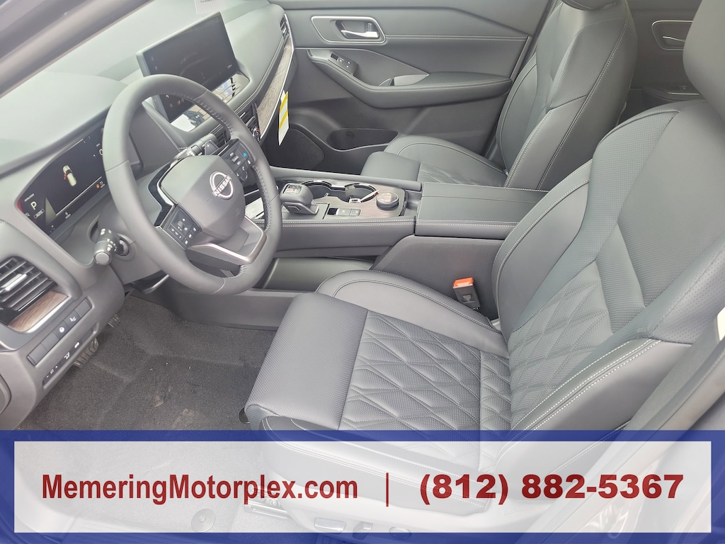 GUN METALLIC, CHARCOAL, QUILTED SEMI-ANILINE LEATHER-APPOINTED SEAT TRIM -inc: Perforated, [P04] PLATINUM PREMIUM PACKAGE -inc: Heated Rear Seats, Motion-Activated Power Liftgate, Tri-Zone Automatic Temperature Control, Head-Up Display, [L93] FLOOR MATS W/2-PIECE CARGO AREA PROTECTOR -inc: seatback protector, First Aid Kit, [B96] ROOF RAIL CROSS BARS, [B95] CHROME REAR BUMPER PROTECTOR, [B94] BLACK SPLASH GUARDS (SET OF 4), Wireless Phone Connectivity, Wheels: 19 Unique Dark Painted Aluminum Alloy -inc: Machine finished, Vehicle Dynamic Control (VDC) Electronic Stability Control (ESC). This Nissan Rogue has a dependable Intercooled Turbo Regular Unleaded I-3 1.5 L/91 engine powering this Variable transmission.