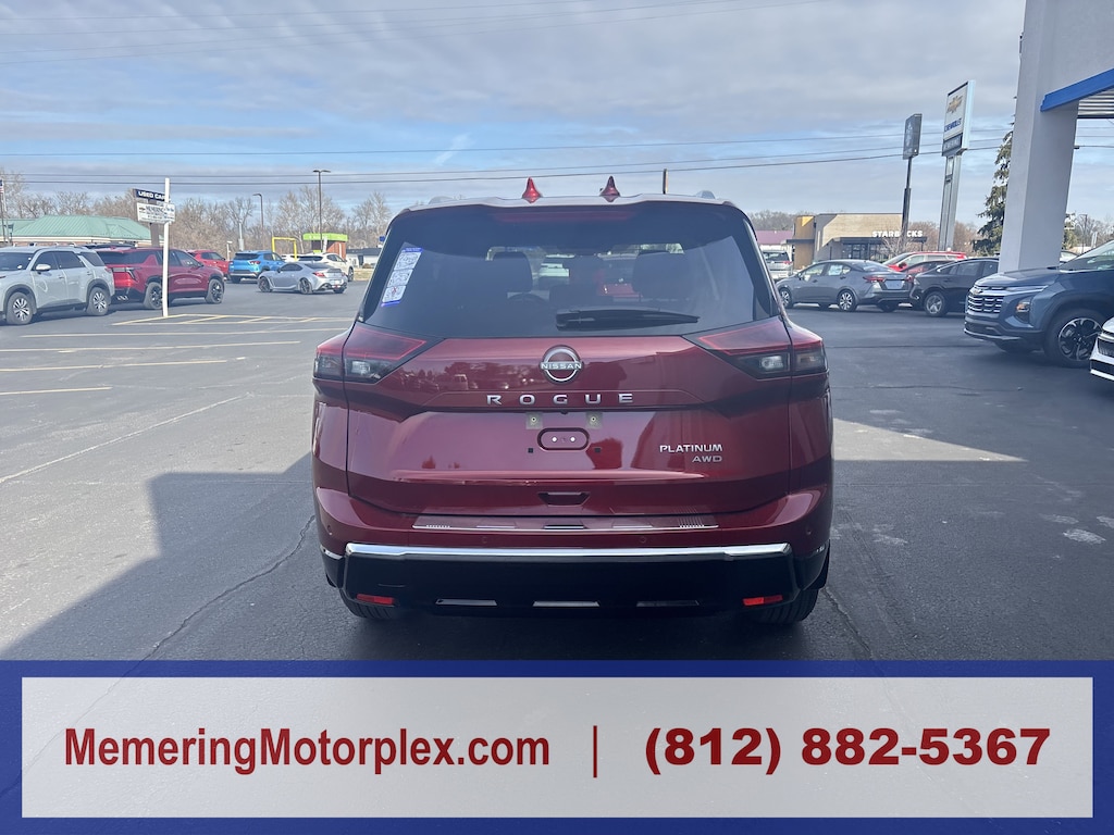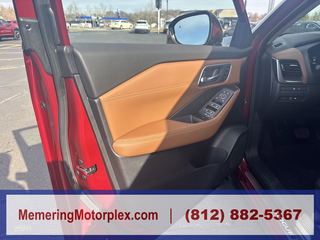 SCARLET EMBER TINTCOAT, CHESTNUT, QUILTED SEMI-ANILINE LEATHER-APPOINTED SEAT TRIM -inc: Perforated, [P04] PLATINUM PREMIUM PACKAGE -inc: Heated Rear Seats, Motion-Activated Power Liftgate, Tri-Zone Automatic Temperature Control, Head-Up Display, [N92] ILLUMINATED KICK PLATES, [L93] FLOOR MATS W/2-PIECE CARGO AREA PROTECTOR -inc: seatback protector, First Aid Kit, [H01] TECH PACKAGE -inc: ProPILOT Assist 2.1, driver monitor, 3D Enhanced Intelligent Around View Monitor, Full 3D rotation, front wide view and invisible hood view, Driver Attention Warning, driver distraction warning, Rain-Sensing Wipers, [E09] PREMIUM PAINT, [B95] CHROME REAR BUMPER PROTECTOR, [B94] BLACK SPLASH GUARDS (SET OF 4), Wireless Phone Connectivity. This Nissan Rogue has a dependable Intercooled Turbo Regular Unleaded I-3 1.5 L/91 engine powering this Variable transmission.