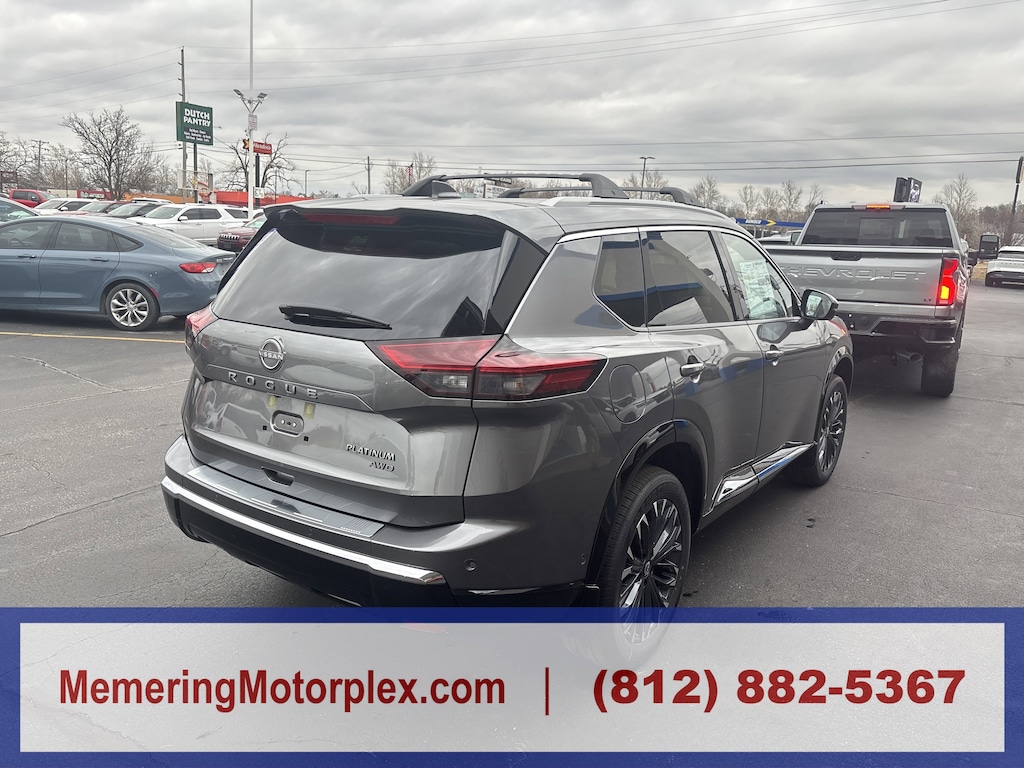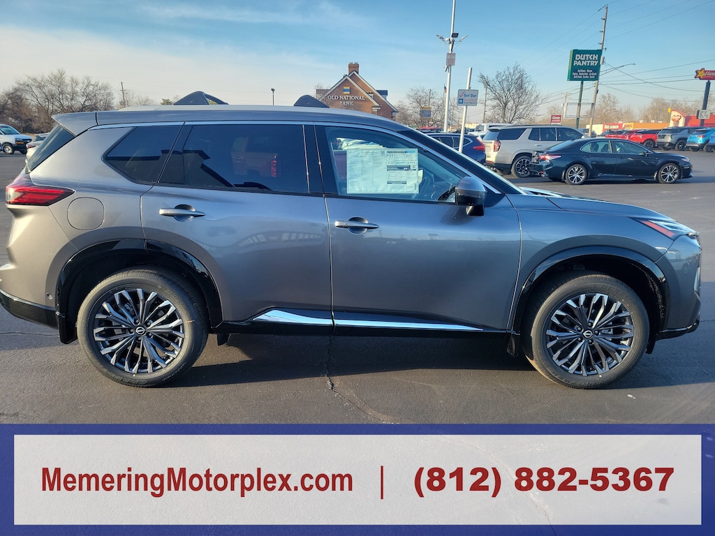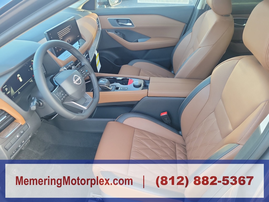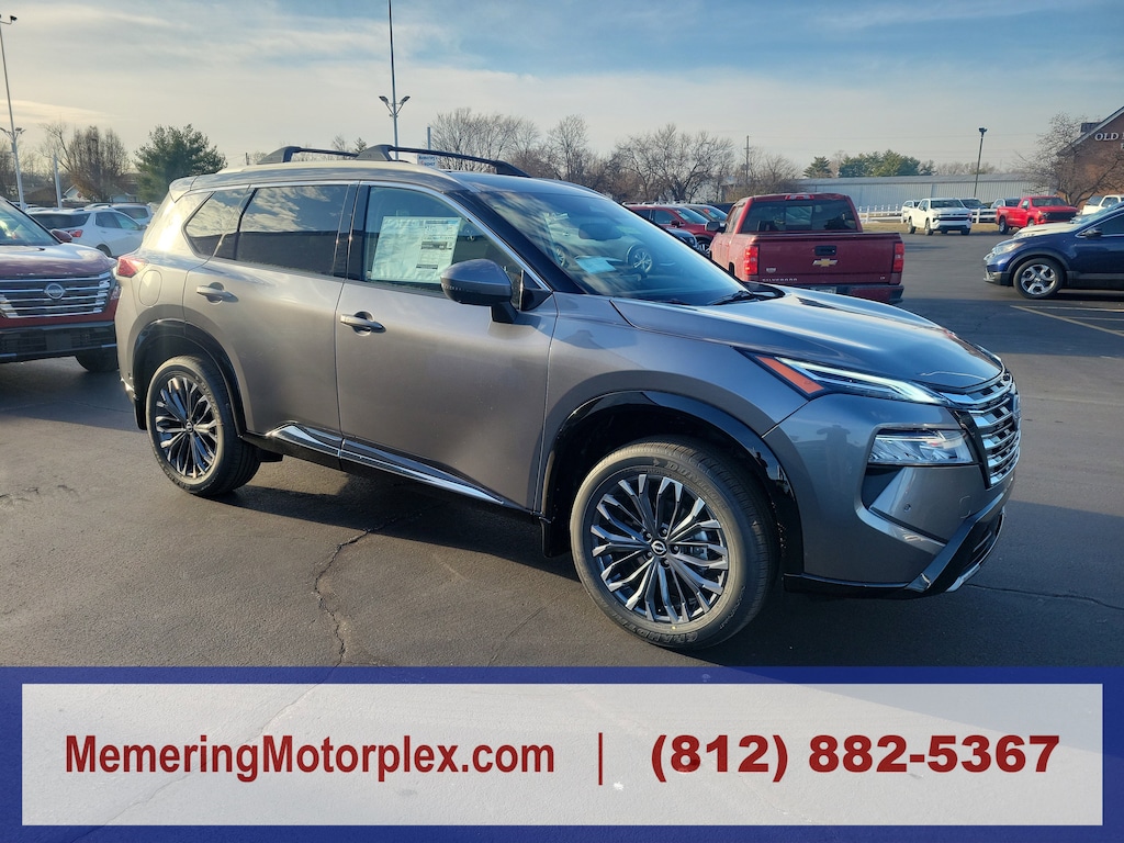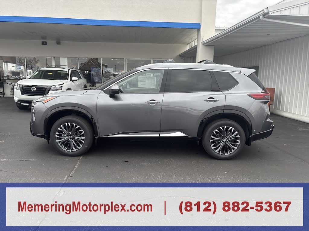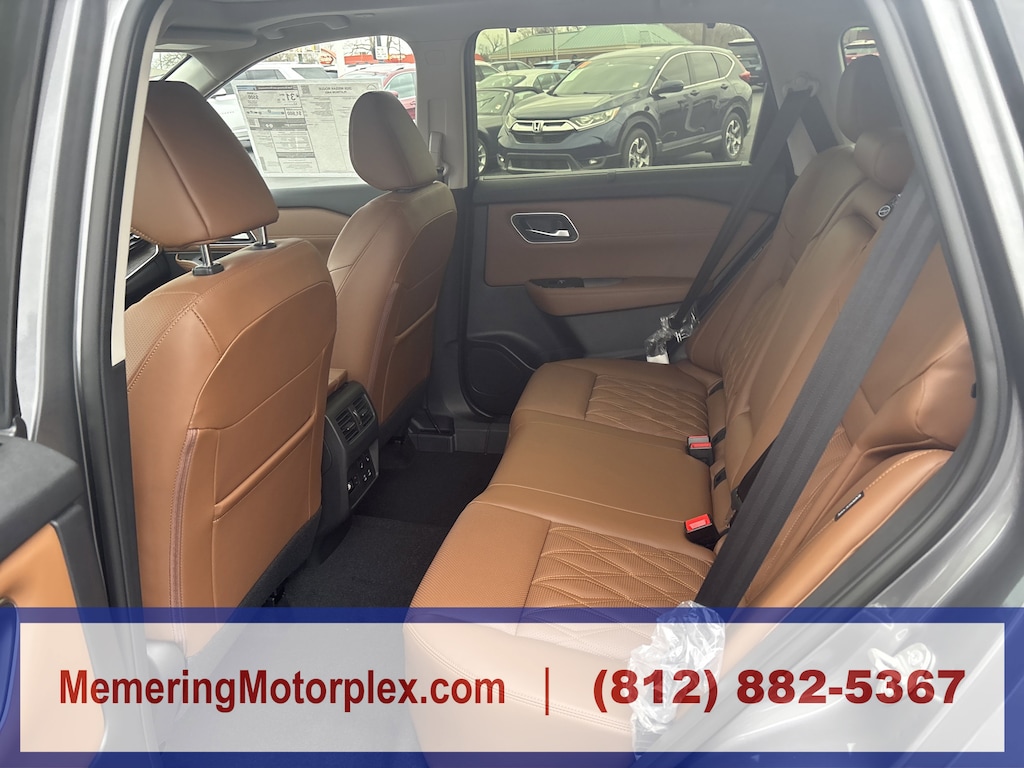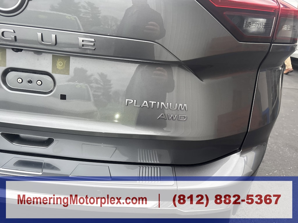 GUN METALLIC, CHESTNUT, QUILTED SEMI-ANILINE LEATHER-APPOINTED SEAT TRIM -inc: Perforated, [P04] PLATINUM PREMIUM PACKAGE -inc: Heated Rear Seats, Motion-Activated Power Liftgate, Tri-Zone Automatic Temperature Control, Head-Up Display, [L93] FLOOR MATS W/2-PIECE CARGO AREA PROTECTOR -inc: seatback protector, First Aid Kit, [B96] ROOF RAIL CROSS BARS, [B95] CHROME REAR BUMPER PROTECTOR, [B94] BLACK SPLASH GUARDS (SET OF 4), Wireless Phone Connectivity, Wheels: 19 Unique Dark Painted Aluminum Alloy -inc: Machine finished, Vehicle Dynamic Control (VDC) Electronic Stability Control (ESC). This Nissan Rogue has a strong Intercooled Turbo Regular Unleaded I-3 1.5 L/91 engine powering this Variable transmission.