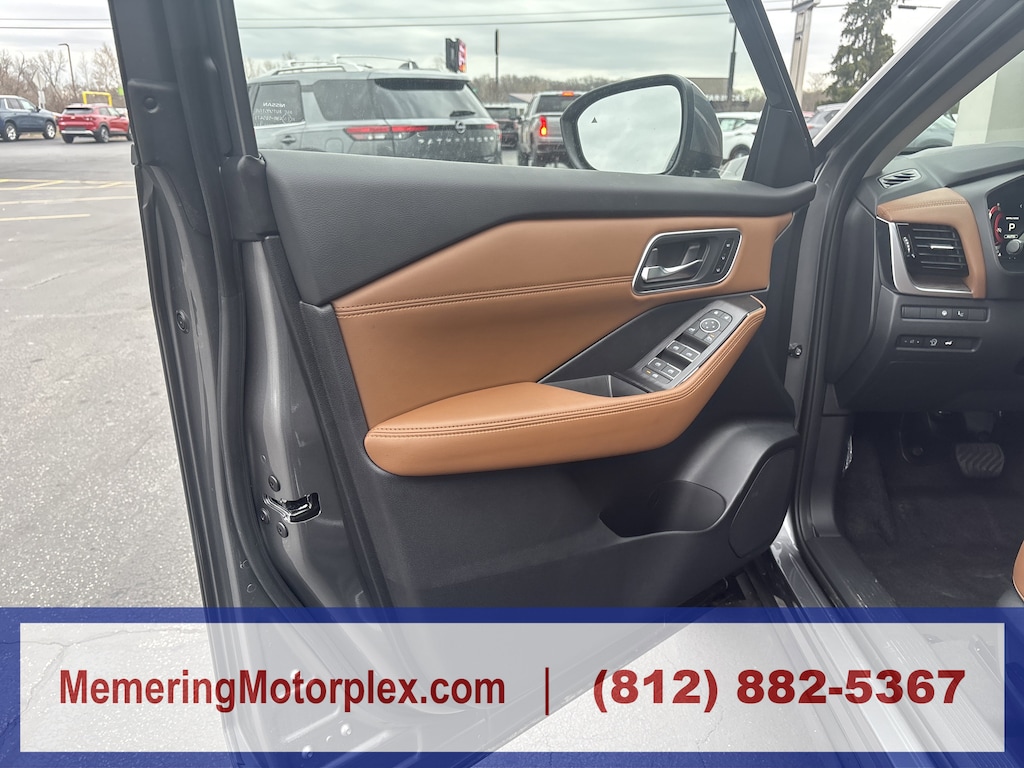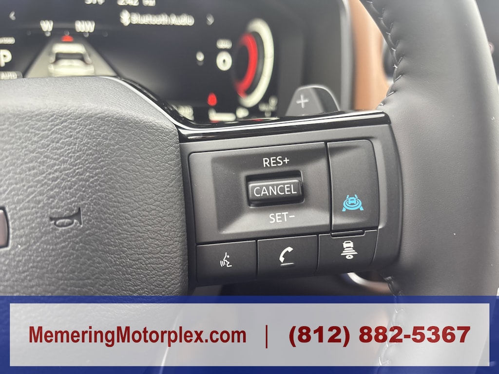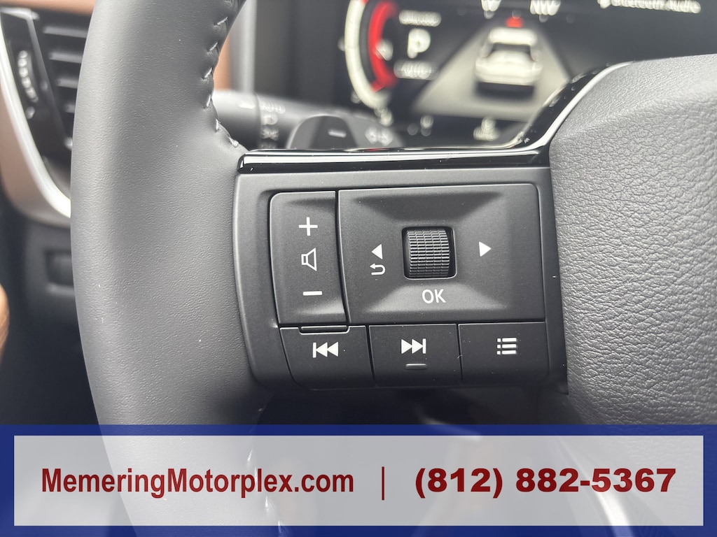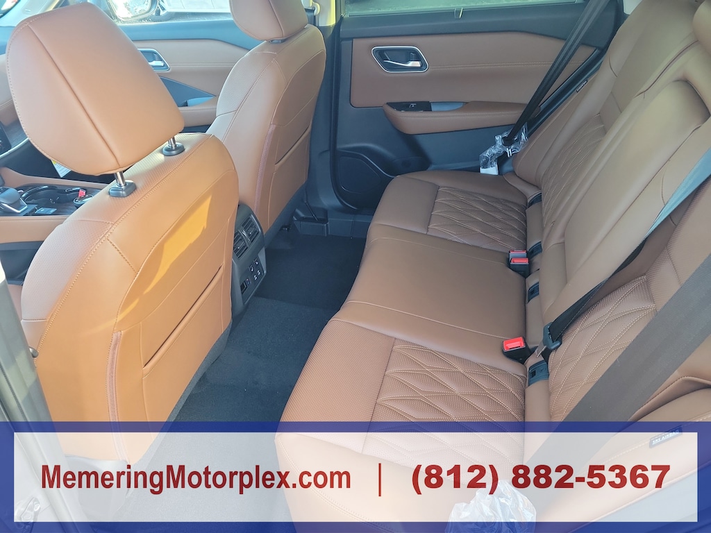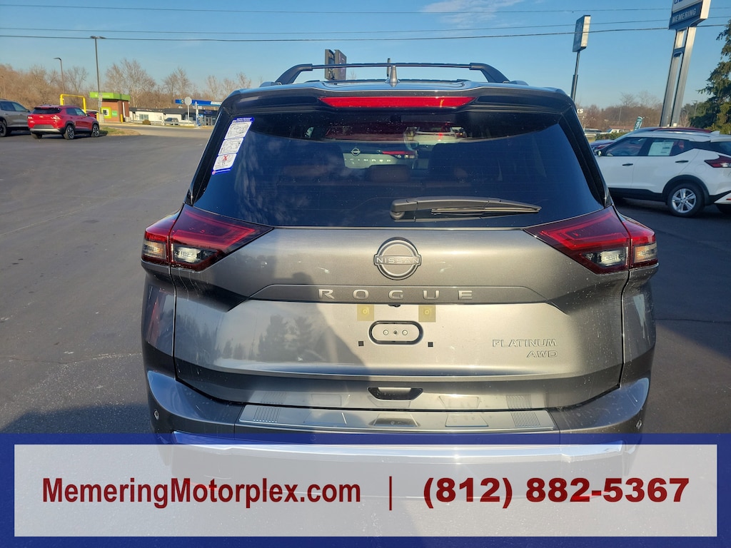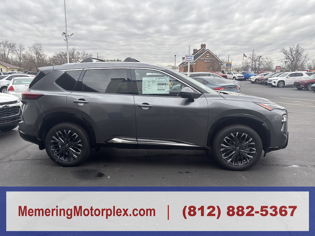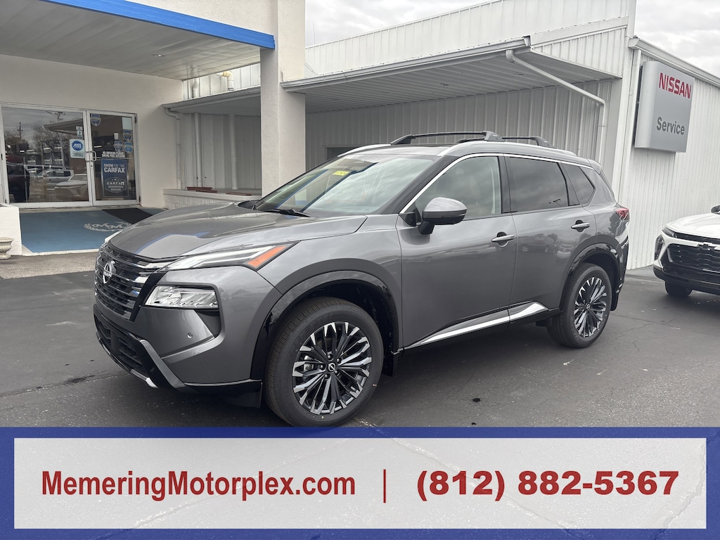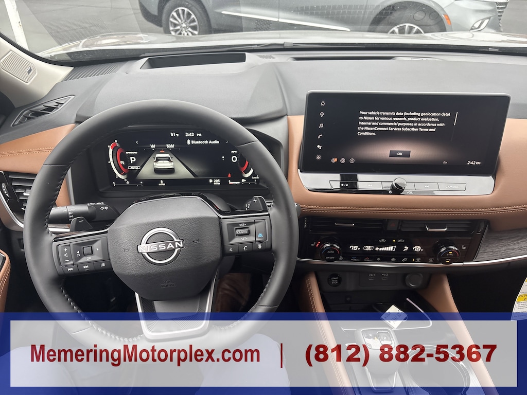 GUN METALLIC, CHESTNUT, QUILTED SEMI-ANILINE LEATHER-APPOINTED SEAT TRIM -inc: Perforated, [P04] PLATINUM PREMIUM PACKAGE -inc: Heated Rear Seats, Motion-Activated Power Liftgate, Tri-Zone Automatic Temperature Control, Head-Up Display, [L93] FLOOR MATS W/2-PIECE CARGO AREA PROTECTOR -inc: seatback protector, First Aid Kit, [B96] ROOF RAIL CROSS BARS, [B95] CHROME REAR BUMPER PROTECTOR, [B94] BLACK SPLASH GUARDS (SET OF 4), Wireless Phone Connectivity, Wheels: 19 Unique Dark Painted Aluminum Alloy -inc: Machine finished, Vehicle Dynamic Control (VDC) Electronic Stability Control (ESC). This Nissan Rogue has a strong Intercooled Turbo Regular Unleaded I-3 1.5 L/91 engine powering this Variable transmission.
