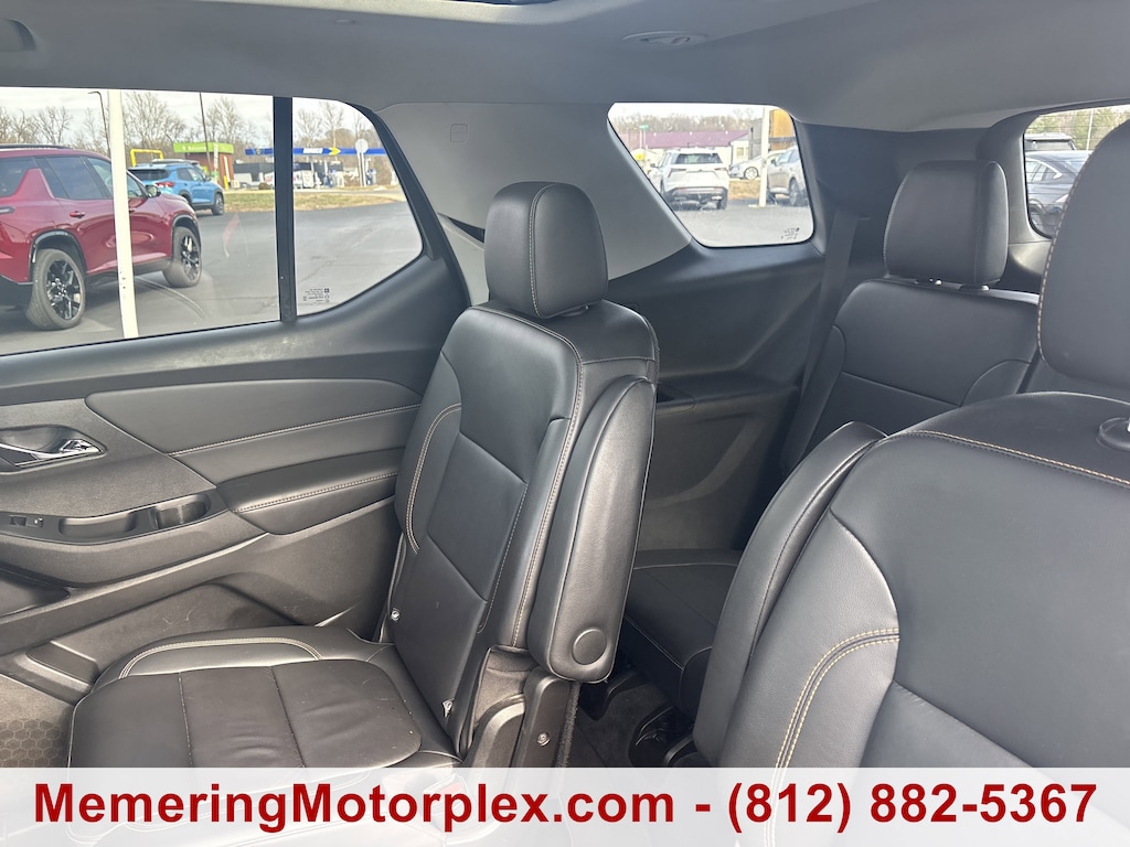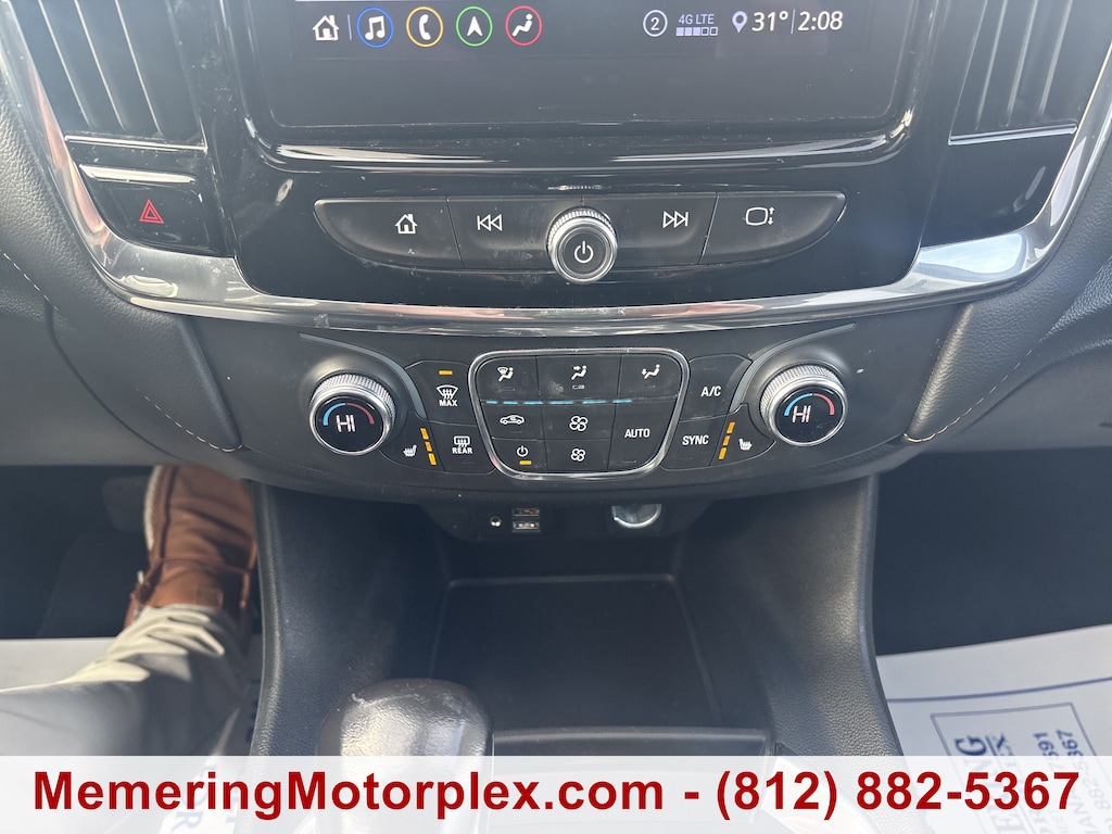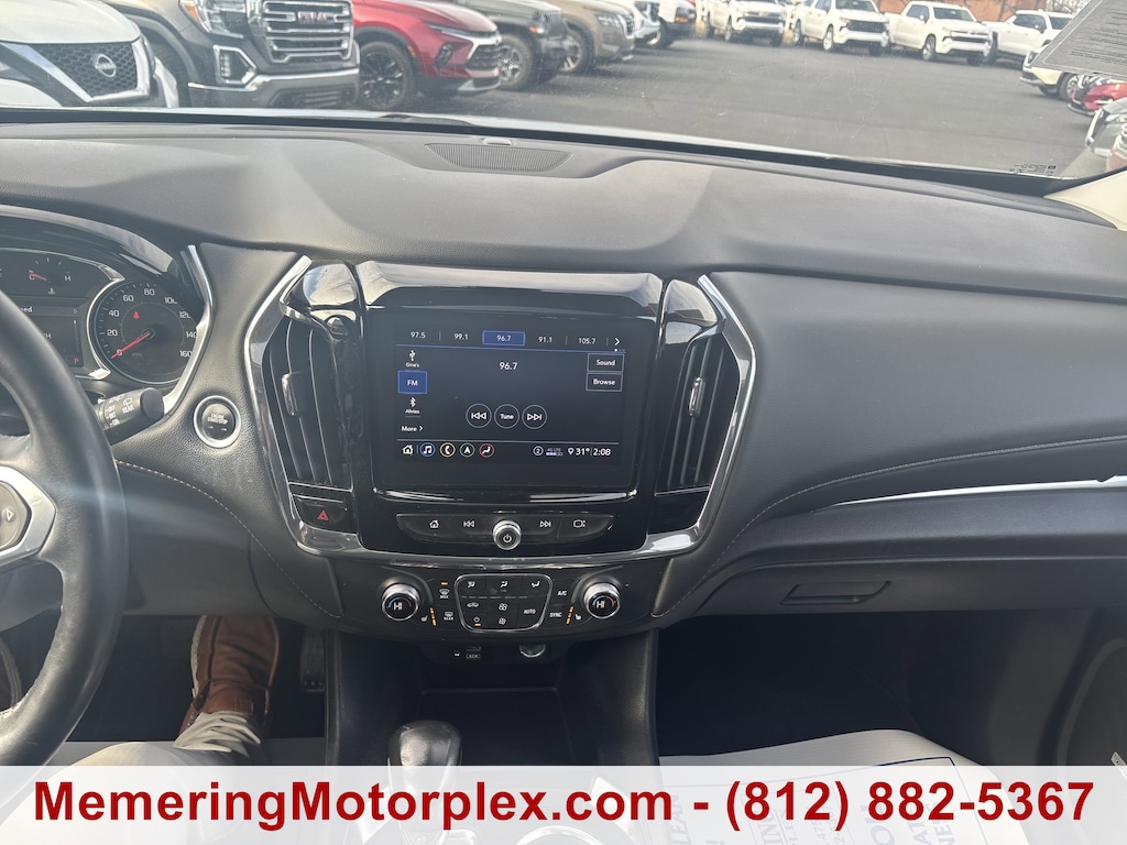 TRANSMISSION, 9-SPEED AUTOMATIC (STD), SUNROOF, DUAL SKYSCAPE 2-PANEL POWER with tilt-sliding front and fixed rear with sunscreen, SEATS, FRONT BUCKET (STD), SATIN STEEL METALLIC, RS PREFERRED EQUIPMENT GROUP Includes Standard Equipment, LICENSE PLATE FRONT MOUNTING PACKAGE (will be forced on orders with ship-to states that require a front license plate), JET BLACK, LEATHER-APPOINTED SEAT TRIM, ENGINE, 3.6L V6, SIDI, VVT (310 hp [232.0 kW] @ 6800 rpm, 266 lb-ft of torque [361 N-m] @ 2800 rpm) (STD), AUDIO SYSTEM, CHEVROLET INFOTAINMENT 3 PREMIUM SYSTEM with connected Navigation, 8 diagonal HD color touchscreen, AM/FM stereo, Bluetooth audio streaming for 2 active devices, Apple CarPlay and Android Auto capable, enhanced voice recognition, additional memory for in-vehicle apps, cloud connected personalization for select infotainment and vehicle settings. Subscription required for enhanced and connected services after trial period (STD), Wipers, front intermittent with washers. This Chevrolet Traverse has a strong Gas V6 3.6L/217 engine powering this Automatic transmission.
