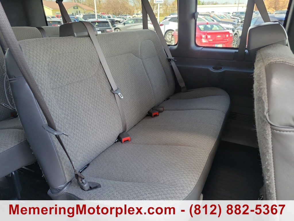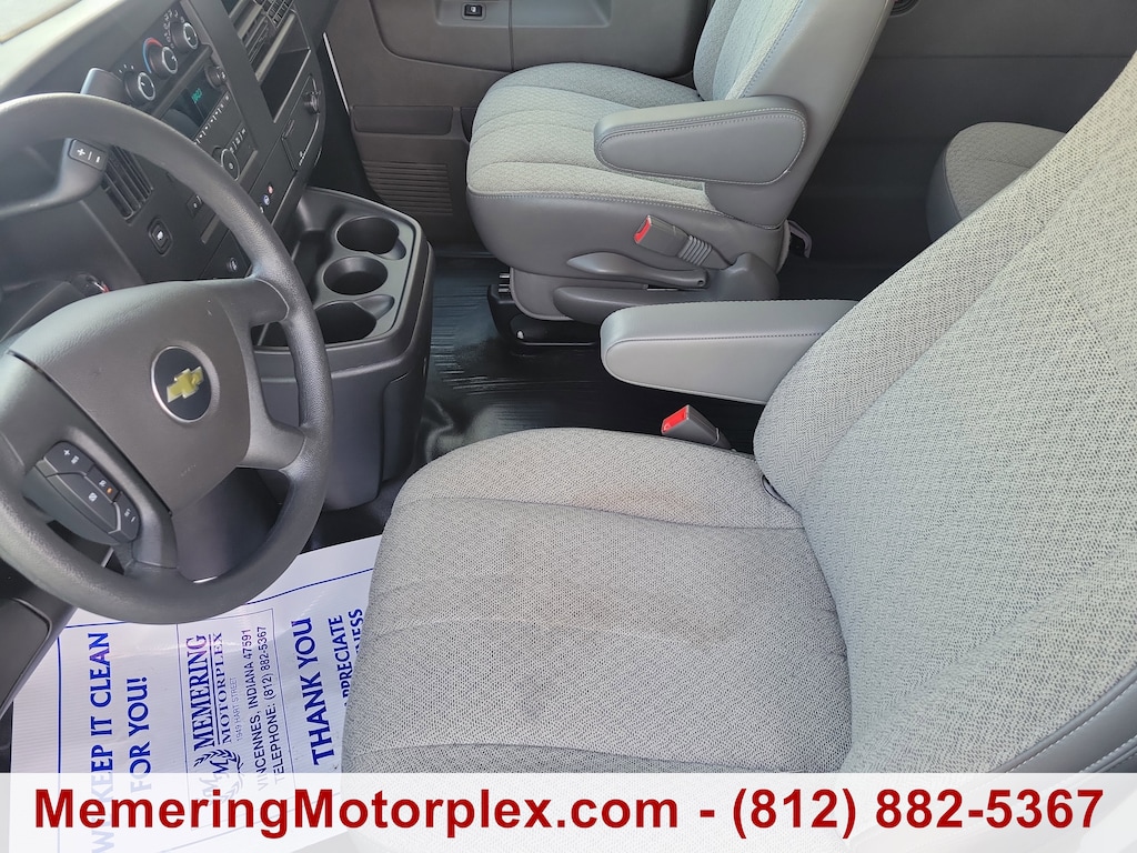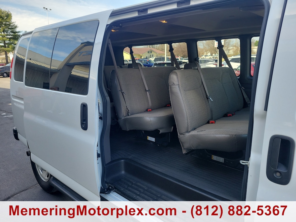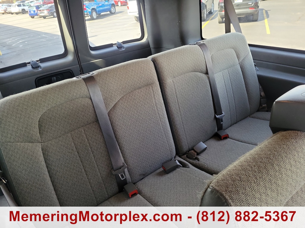 TRANSMISSION, 6-SPEED AUTOMATIC, HEAVY-DUTY, ELECTRONICALLY CONTROLLED with overdrive and tow/haul mode. Includes Cruise Grade Braking, Powertrain Grade Braking, and Tap-Up/Tap-Down Driver Shift Control, SUMMIT WHITE, SHIP THRU, PRODUCED IN WENTZVILLE AND SHIPPED TO ADRIAN STEEL, SEATS, FRONT BUCKET WITH CUSTOM CLOTH TRIM head restraints and inboard armrests Includes (BA3) console with swing-out storage bin., SEATING, 12-PASSENGER, (2-3-3-4 SEATING CONFIGURATION) 4-passenger seat is a 50/50 split, 2-piece configuration (STD), SEAT ADJUSTER, DRIVER 6-WAY POWER, REAR PARK ASSIST, REAR AXLE, 3.42 RATIO, PAINT, SOLID (STD), MEDIUM PEWTER, CUSTOM CLOTH. This Chevrolet Express Passenger has a strong Gas V8 6.6L/ engine powering this Automatic transmission.