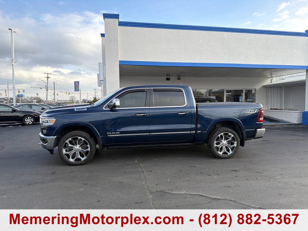 WHEELS: 22 X 9 POLISH/PAINTED W/INSERTS -inc: Tires: 285/45R22XL BSW All Season, TRANSMISSION: 8-SPEED AUTOMATIC (8HP75), TRAILER TOW GROUP -inc: Trailer Brake Control, Power Chrome Trailer Tow Mirrors, Trailer Tow Mirrors, TRAILER BRAKE CONTROL, TIRES: 285/45R22XL BSW ALL SEASON, QUICK ORDER PACKAGE 27M LIMITED -inc: Engine: 5.7L V8 HEMI MDS VVT eTorque, Transmission: 8-Speed Automatic (8HP75), PATRIOT BLUE PEARLCOAT, LIMITED LEVEL 1 EQUIPMENT GROUP -inc: harman/kardon 19 Speaker Premium Sound, Adaptive Cruise Control w/Stop & Go, Advanced Brake Assist, Parallel & Perp Park Assist w/Stop, Ventilated Rear Seats, Full Speed Forward Collision Warning Plus, Lane Keep Assist, GVWR: 7,100 LBS, ENGINE: 5.7L V8 HEMI MDS VVT ETORQUE -inc: Active Noise Control System, Heavy Duty Engine Cooling, GVWR: 7,100 lbs, Dual Rear Exhaust w/Bright Tips, Hemi Badge, 18 Aluminum Spare Wheel. This Ram 1500 has a strong Regular Unleaded V-8 5.7 L/345 engine powering this Automatic transmission.
